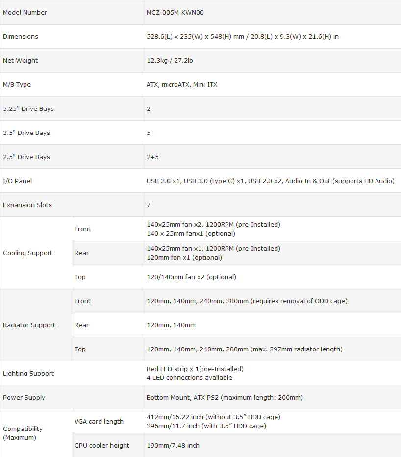 MasterCase Maker is made in the form factor Mid-Tower and it is quite roomy.  The new product can easily accommodate ATX motherboards, graphics cards up to 412 mm CPU cooling system up to 190 mm in height and power supplies up to 200 mm in length.  There is also a space for mounting multiple radiator liquid cooling systems up to 280 mm size.
