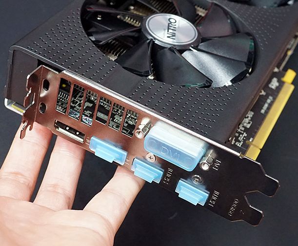 On the rear panel you can find carefully covered with plugs port DVI, as well as two DisplayPort and HDMI, respectively.  For the ventilation slots do not have much space.