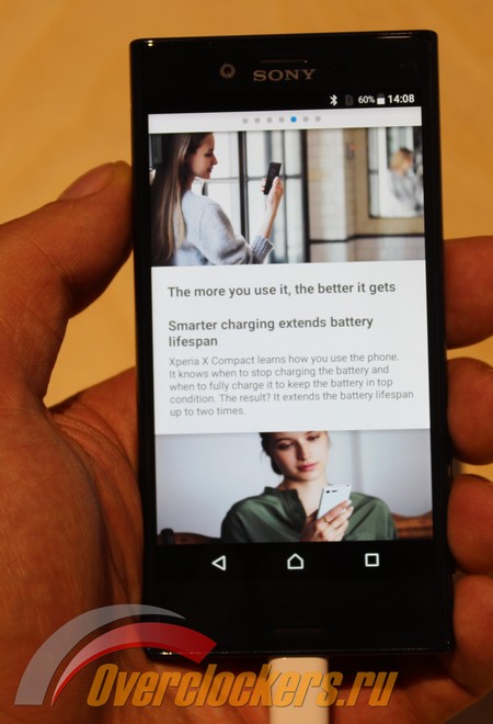 Also smartphone Xperia X Compact was introduced, which is different from the flagship smaller and less productive hardware platform.  This smartphone is equipped with 4.6-inch display with a resolution of 1280 x 720 pixels, Snapdragon platform 650 with 3 GB of RAM, 32 GB of internal memory, a battery 2700 mAh battery, and a 5-megapixel front-facing camera.