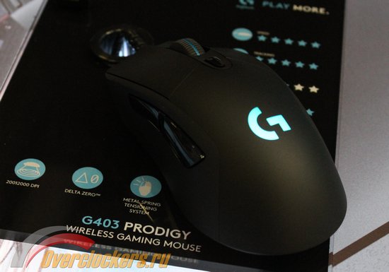 The G403 Prodigy is based on an optical sensor PixArt PMW3366, whose resolution can vary from 200 to 12,000 dpi.  For new items stated in the 40g maximum acceleration, maximum speed of 7.62 m / s, and USB sample rate of 1 ms.  Also, the manufacturer emphasizes the excellent responsiveness of the mouse buttons.  For manipulator work meets the 32-bit ARM processor, which is complemented by built-in memory to store settings buttons.    Dimensions new items are 124 x 68 x 43 mm.