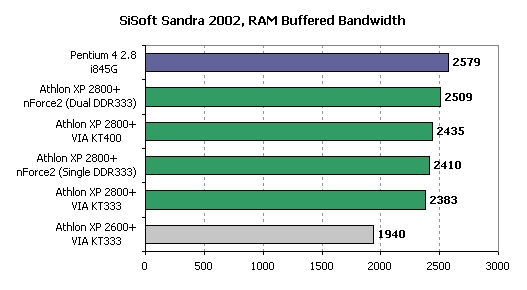 Side by side with NVIDIA nForce2 chipset, Athlon XP 2800+ managed to beat Pentium 4 2.8GHz.