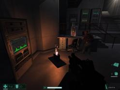While the physical settings are detailed and intriguing, they lack variety. The dominant theme is techno-industrial, with an indoor urban flair. In many ways, what you see is reminiscent of the levels in Doom 3 and Area 51. The similarity in physical environments across levels and across rooms can make it easy to get lost, as over time everything begins to look alike; you need to do a lot of looking around, which more than occasionally is rewarded by hidden treasures. This problem is compounded by the similarity in mission objectives as you proceed, with the goal often simply being "find Fettel." There is no inherent reason why there could not have been more diversity among the eleven "intervals" (as they are called here) in the gameplay.