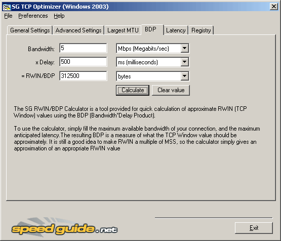 This section contains a Bandwidth * Delay calculator. The BDP is a very
