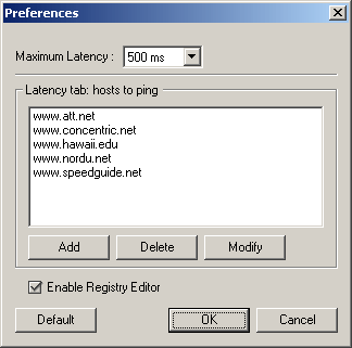 The second section in the Preferences menu, "Latency tab: hosts to ping"