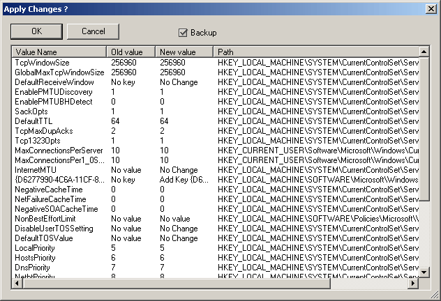 Sharing, AOL protocol MTU, etc), only ads the necessary Registry parameters, and