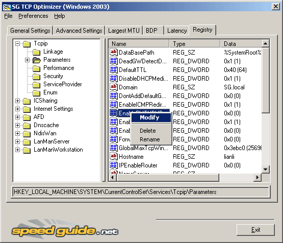 interface for tuning TCP and IP related parameters in the Windows Registry. It