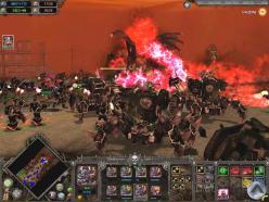 Interestingly, there are no single units when it comes to infantry. All summoned troops come in squads, and can be reinforced up to a certain racial cap. For example, a squad of Space Marines comes in by default at four, and can be reinforced to a maximum of 10 (eight plus a sergeant and an attached special unit) after you’ve researched up the limit for the Marines. This is in contrast to the Orks limit of 17 units per squad. You can also research sergeant ranks, one per squad to increase morale. They have access to higher grade weapons like power-fists and chain swords that normal units don’t get, improving squad efficiency. Unique commander troops can also be summoned. These have access to the best weapons, enforce morale even more than sergeants, and usually have special abilities like Daemon Strength (for Chaos). Finally there are the special heavy units - walkers, tanks, and such. The armies of the Emperor have the widest variety of vehicles, as well as the most powerful. This is offset by certain massive creatures that the other races have access to. The Orks have the Squiggoth (a giant armored dinosaur), Chaos has the Bloodthirster Greater Daemon, and the Eldar have the Avatar of Khaine, their blood-handed god of war. All of these are rare on the battlefield, but deal frightening amounts of damage when called.