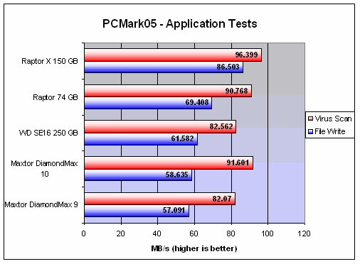 150 GB Raptor in those tests that are demanding on the storage subsystem. Nero